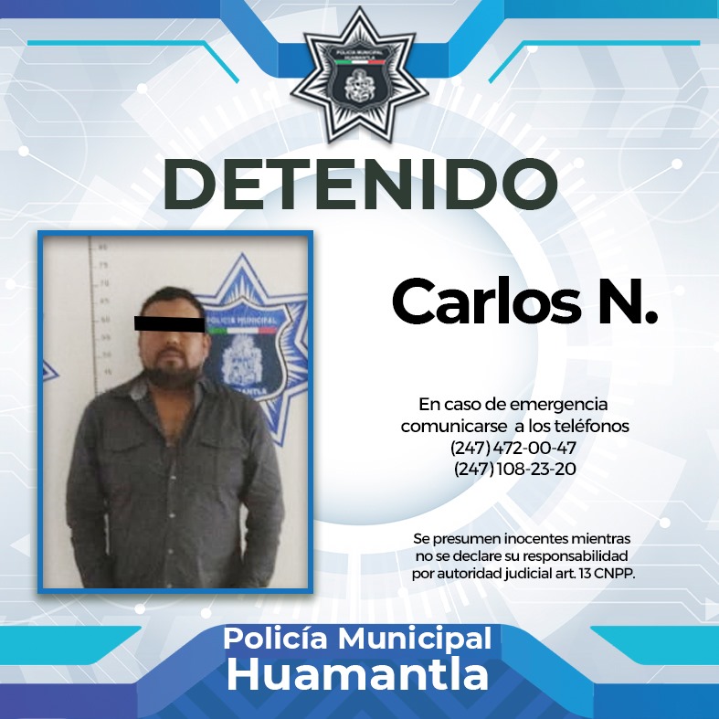 DETIENE POLICÍA DE HUAMANTLA A SUJETO POR VIOLENTAR A SU FAMILIA EN ESTADO DE EBRIEDAD