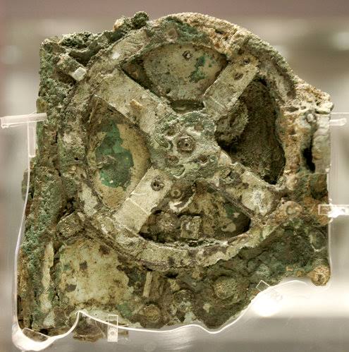 El mecanismo de Anticitera, hecho de bronce, es un dispositivo de relojería compuesto por al menos 30 engranajes. Se cree que fue utilizado para predecir posiciones astronómicas y eclipses, así como para determinar fechas importantes en el calendario griego antiguo, incluyendo los Juegos Panhelénicos.