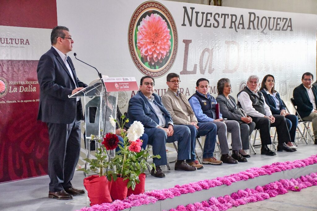 Ante representantes de los tres niveles de gobierno, Calva Pimentel, abundó que Huamantla se ha convertido en uno de los principales centros de producción de la Flor de México (la Dalia) en todo el país, teniendo entre sus productores a don Vicente Macías, quien con su familia ha logrado la generación de catorce variedades de Dalia.