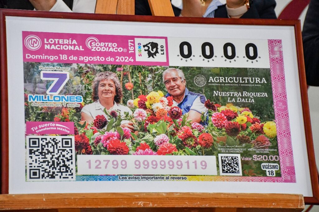 Al develarse el billete de la Lotería Nacional para su sorteo del próximo 18 de agosto donde destaca la flor de la Dalia como elemento principal, la presidenta municipal interina de Huamantla, Luz María Calva Pimentel, aseguró que esta flor actualmente es un referente no solo de este Pueblo Mágico, sino de todo el país.