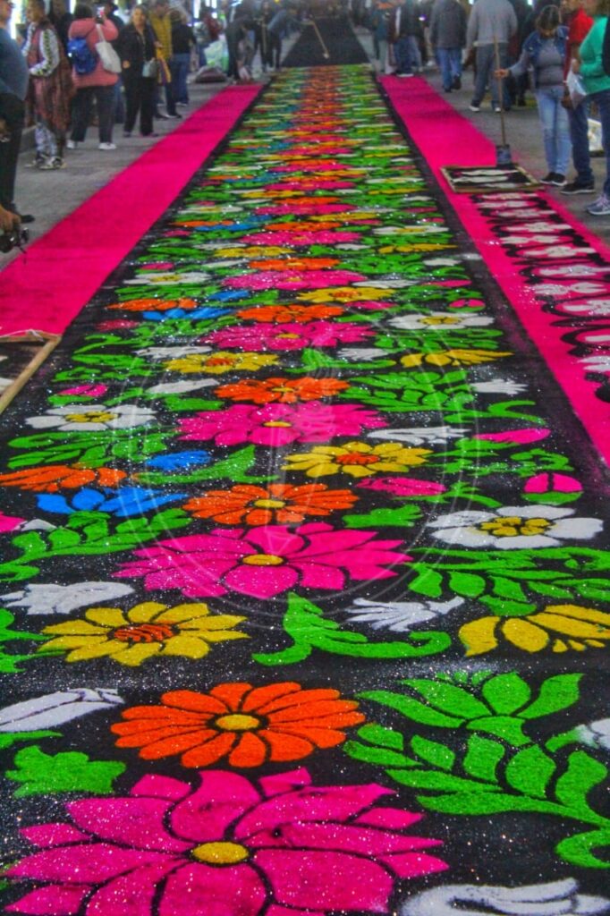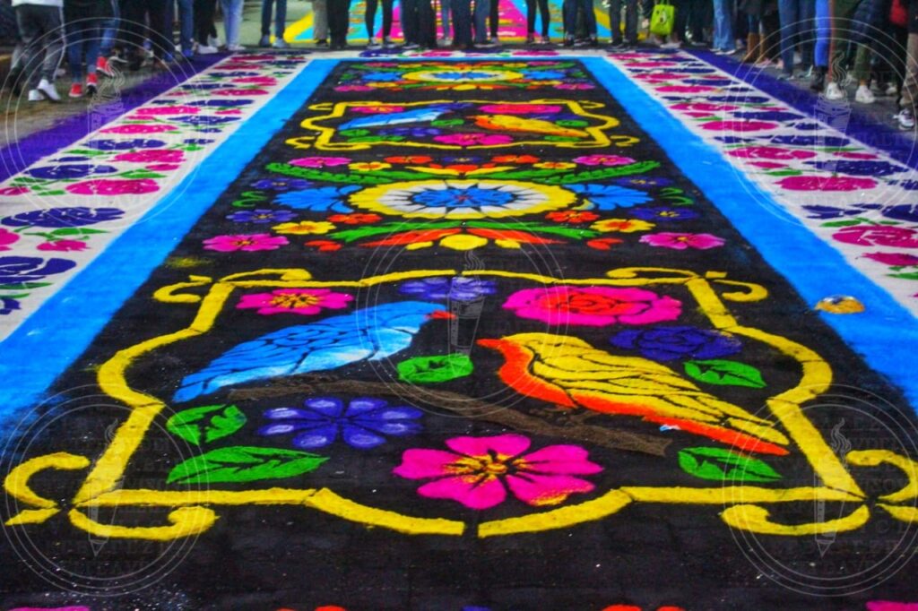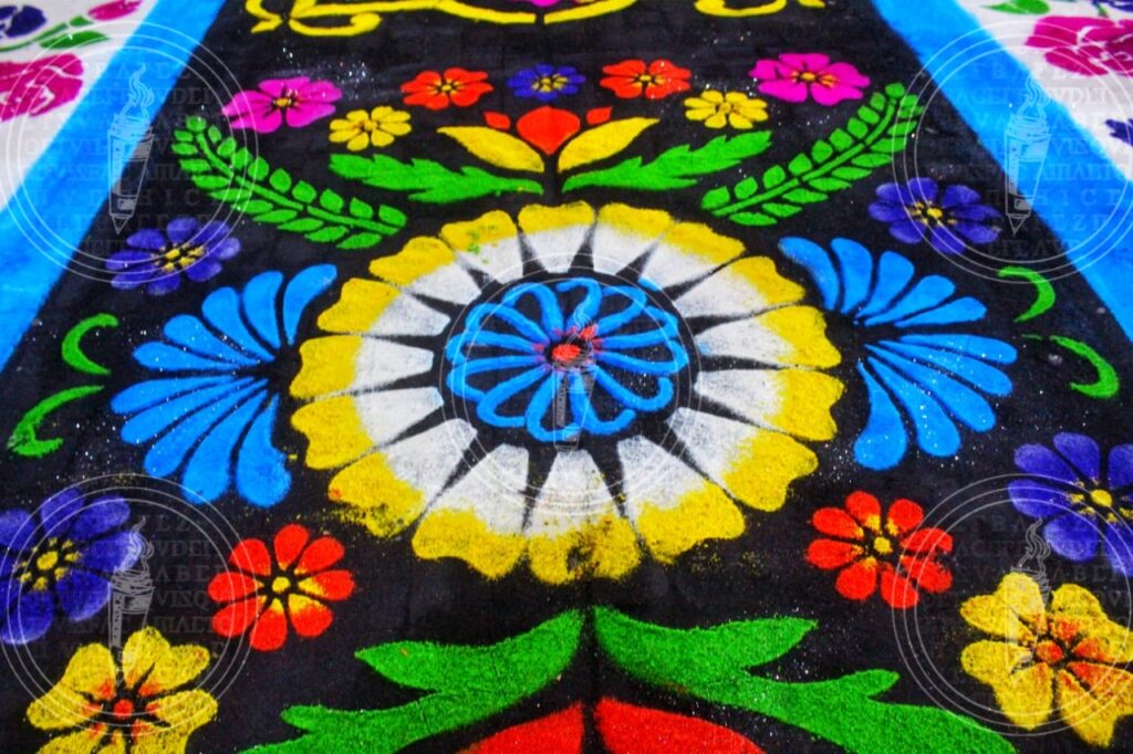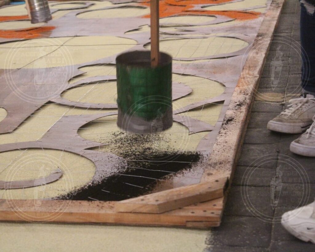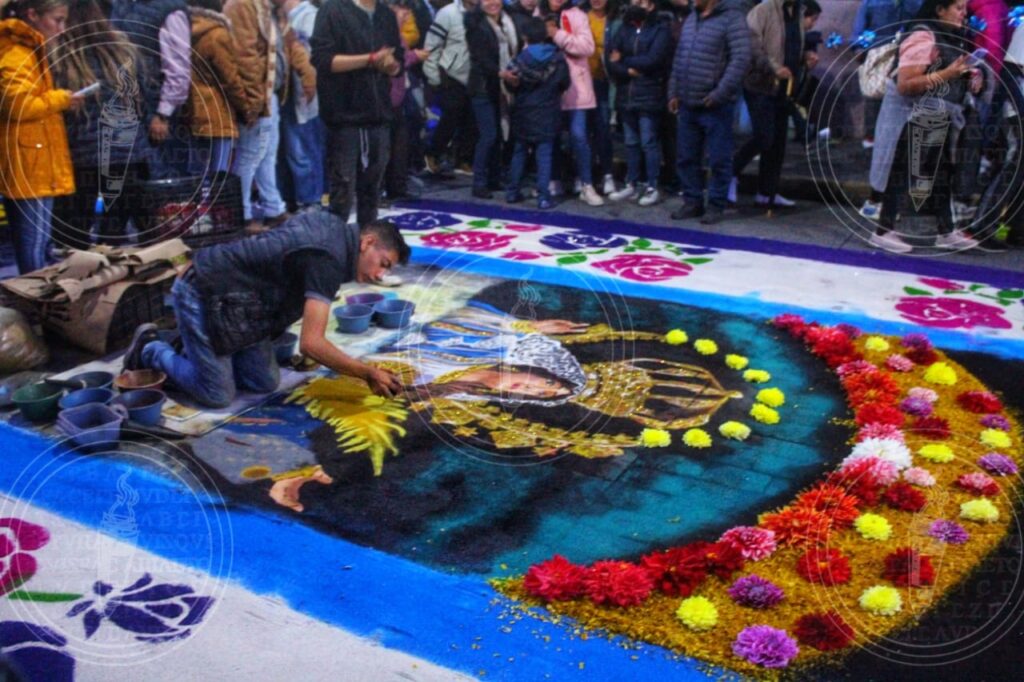 Las calles de Huamantla se transforman en lienzos donde se plasman intrincados diseños y figuras, utilizando una variedad de materiales que van desde aserrín teñido hasta flores y semillas. Esta manifestación artística no solo es un tributo a la devoción religiosa, sino también una muestra del talento y la dedicación de cada participante.