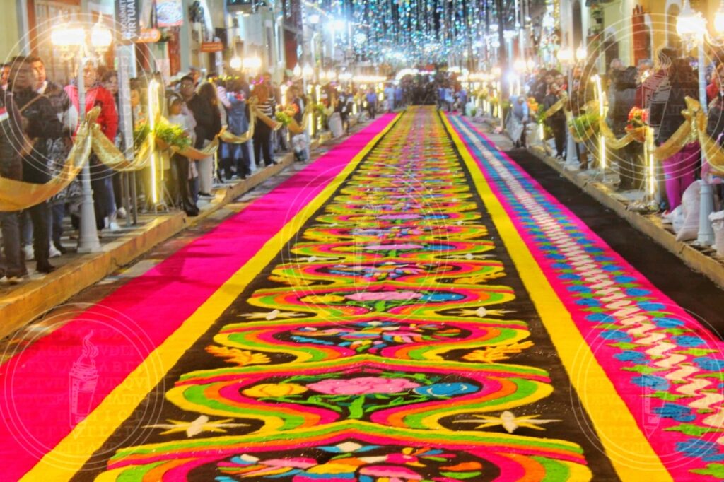 La noche que nadie duerme. Como cada año, el pintoresco pueblo mágico de Huamantla se viste de colores y creatividad para celebrar su tradicional arte efímero. En un despliegue de fe y entusiasmo, los habitantes y visitantes se unen para confeccionar alfombras multicolores en honor a la Virgen de la Caridad.