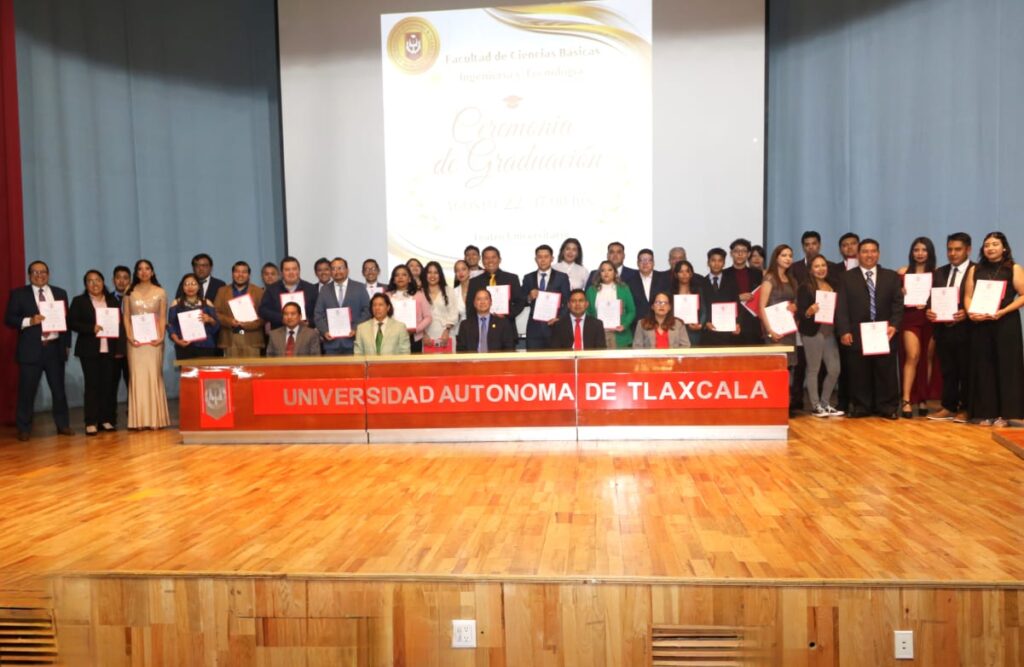 Nuevos profesionistas en Ciencias Básicas egresan de la Facultad de Ciencias Básicas Ingeniería y Tecnología de la Universidad Autónoma de Tlaxcala (UATx), en una solemne ceremonia de graduación se entregaron las constancias que avalan la culminación de la trayectoria universitaria a las y los egresados de las licenciaturas en Ingeniería Química, Ingeniería en Sistemas Electrónicos, Ingeniería en Computación, Ingeniería Mecánica e Química Industrial; de las maestrías en Ciencias de la Calidad, Usos y Gestión de las Tecnologías de la Información, Ingeniería del Software y Matemáticas; y del Doctorado en Ciencias Computacionales y Electrónicos.
