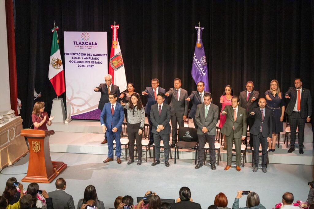 Los nuevos integrantes que tomaron protesta fueron: en las Secretarías de Cultura (SC), Karen Álvarez Villeda; de Turismo (Secture), Fabricio Mena Rodríguez; de Medio Ambiente (SMA), Pedro Aquino Alvarado; en las Coordinaciones de Comunicación (CCOM), Octavio Ortega Velio Mejía; de Planeación e Inversión (CGPI), Noé Rodríguez Roldán; en la Consejería Jurídica (CJE), Rubén Terán Águila; en el Instituto Tlaxcalteca de Infraestructura Física Educativa (Itife), Cutberto Benito Cano Coyotl.
