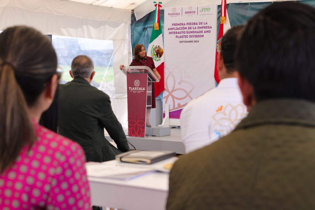 La gobernadora Lorena Cuéllar Cisneros presidió la colocación de la primera piedra de la nueva nave de las instalaciones de la empresa Interauto Sunshade and Plastic Division, en Ciudad Industrial Xicoténcatl (CIX) III, en Tlaxco, cuya inversión asciende a 120 millones de pesos y se estima la creación de 240 empleos directos en Tlaxcala.