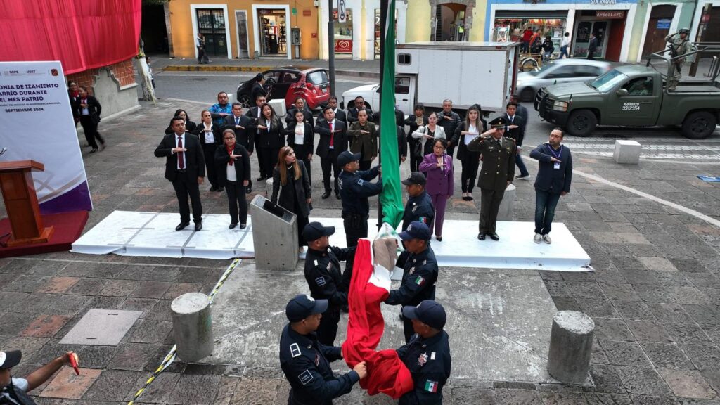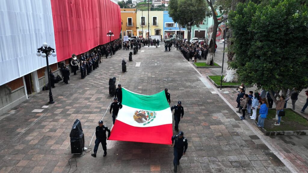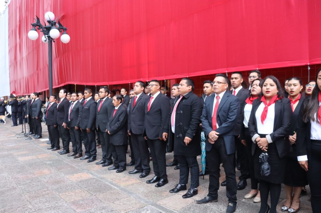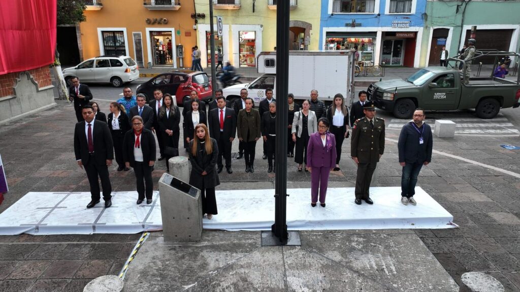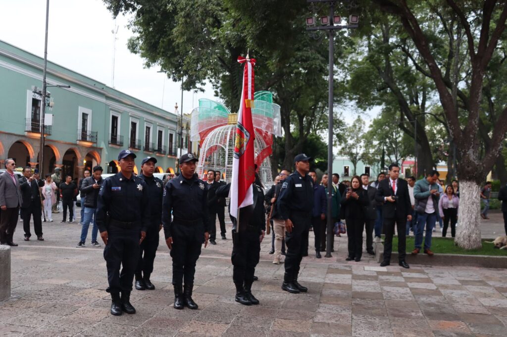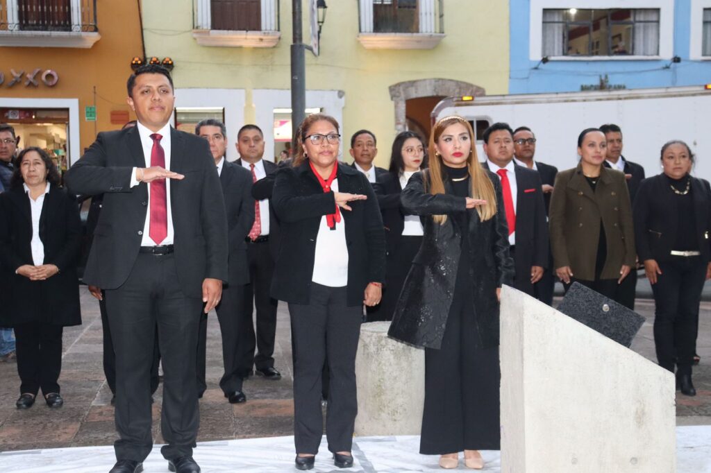 Asiste Gobierno Municipal de Contla a ceremonia de arrío de bandera en la Plaza de la Constitución de Tlaxcala