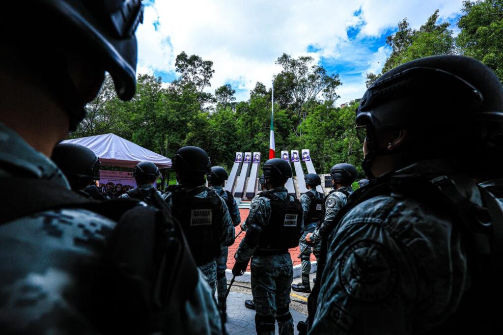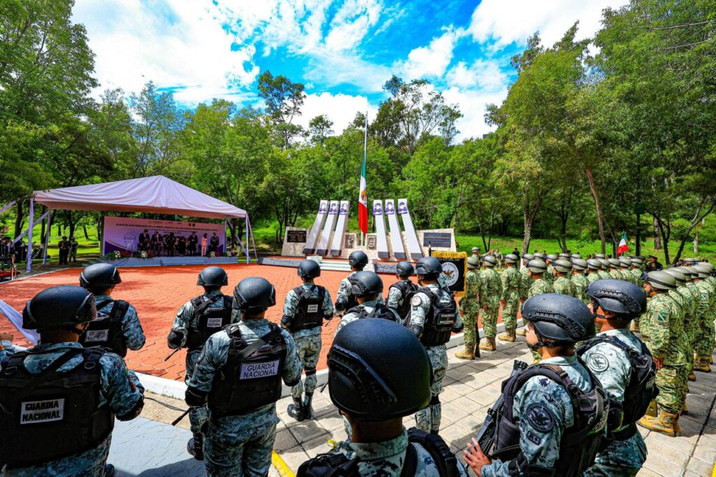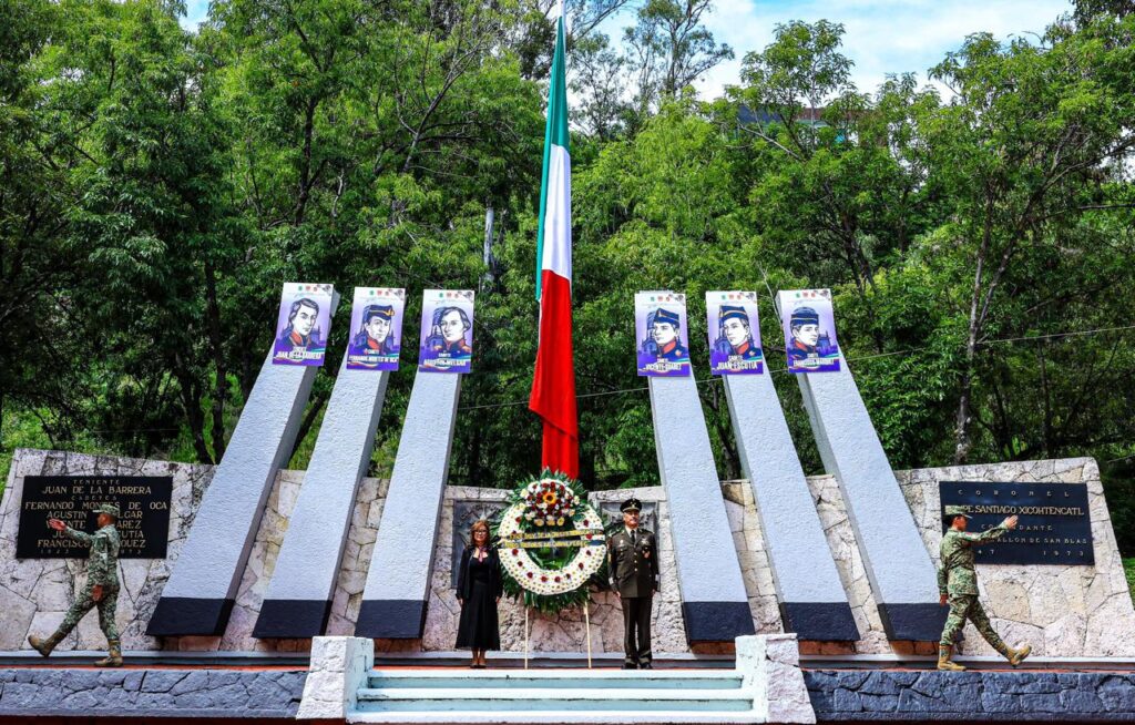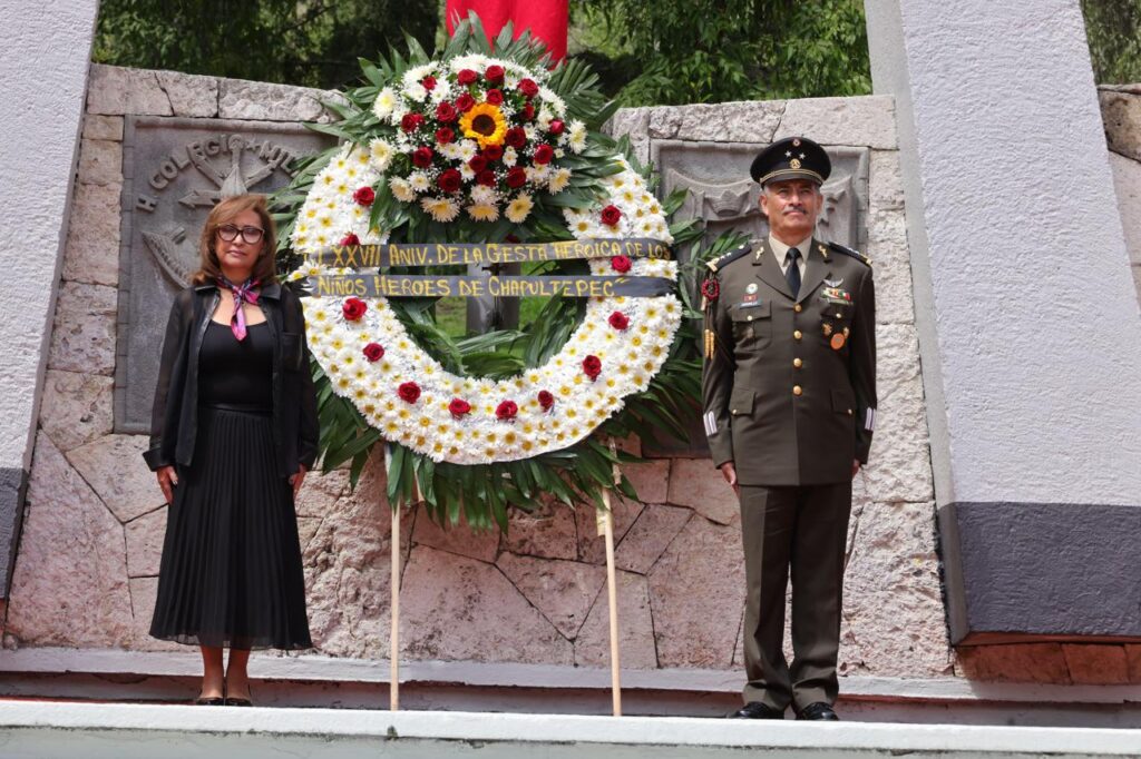 La mandataria estatal y el comandante de la zona militar montaron una guardia de honor junto a una ofrenda floral en el monumento a los cadetes, al tiempo que se interpretó el toque militar de silencio.