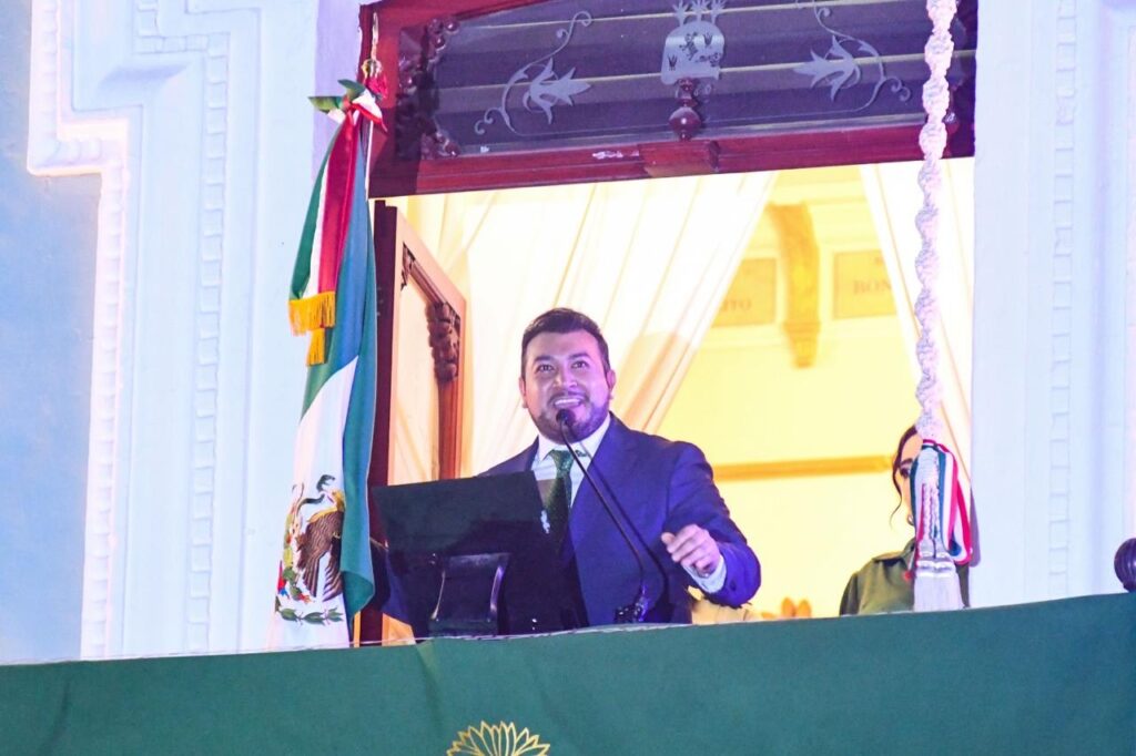 Ante cientos de familias que se dieron cita frente a la Presidencia Municipal, el edil de Huamantla vitoreó con gran emoción a los héroes que dieron su vida para lograr un país libre y soberano.
