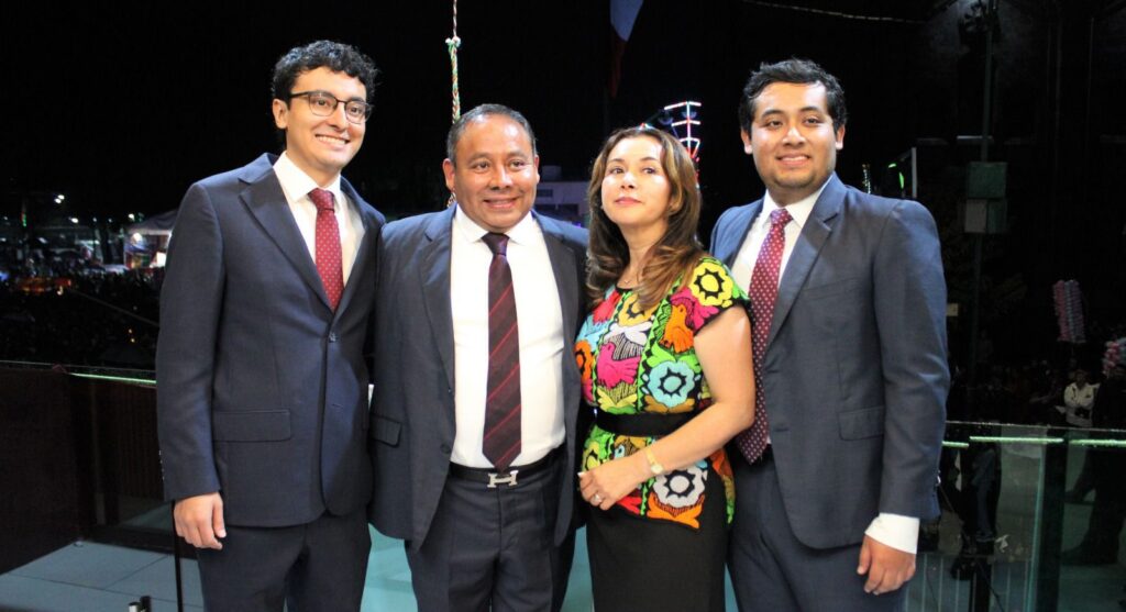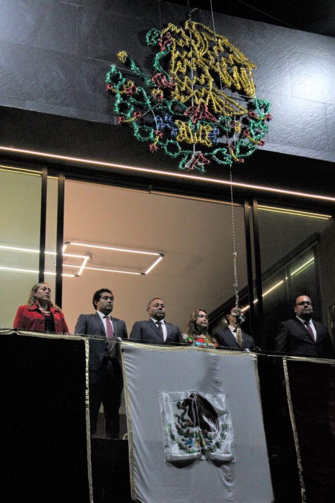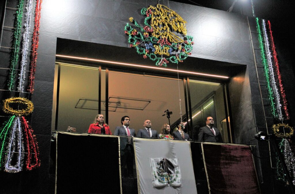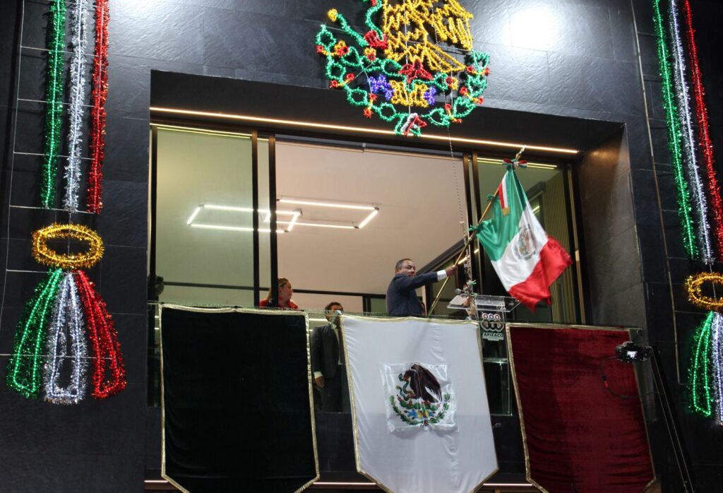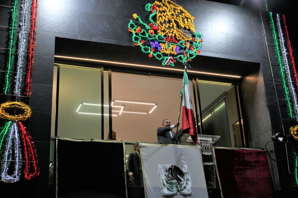 Desde el balcón de la Presidencia Municipal, acompañado de su esposa, Anabel Monter Ríos, presidenta honorífica del DIF, y sus hijos, el mandatario ondeó la Bandera Nacional y nombró a los hombres y mujeres que participaron en el movimiento de Independencia.