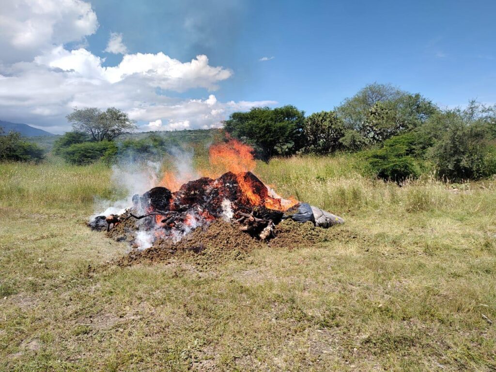 De ambos hallazgos se dio parte a la agencia del Ministerio Público de la Federación en la entidad y, con la debida autorización, se procedió a la destrucción de la posible droga mediante el método de incineración.