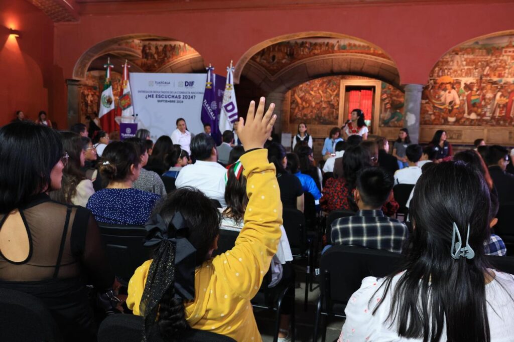 La gobernadora Lorena Cuéllar Cisneros encabezó la entrega de resultados de la Consulta Nacional ¿Me escuchas?, en la que participaron más de 13 mil niñas, niños y adolescentes (NNA) de Tlaxcala.