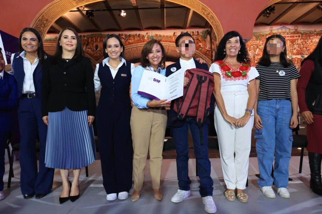 En compañía de las presidentas del Sistema Nacional para el Desarrollo Integral de la Familia (SNDIF), Nuria Fernández Espresate, y del Sistema Estatal (SEDIF), Mariana Espinosa de los Monteros Cuéllar, la mandataria expresó su gusto por ver “a estos grandes impulsores de la transformación, que además ya llevan tres años trabajando en sus sentimientos, en sus emociones, y se nota su avance”.