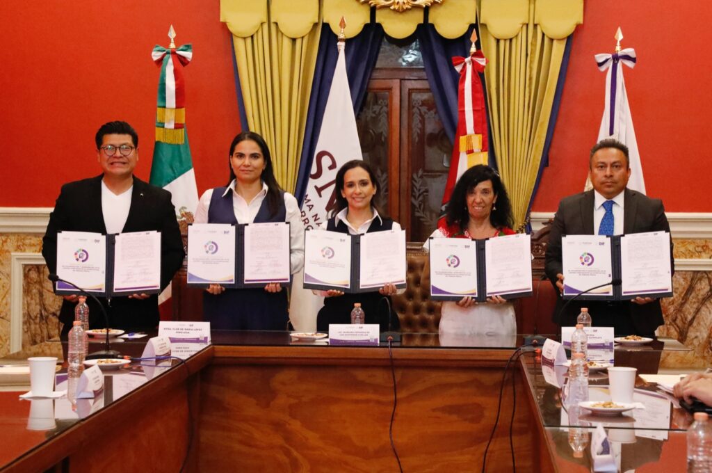 Para ello, en el salón rojo de Palacio de Gobierno, la titular del Sndif, Nuria Fernández Espresate; la presidenta honorífica del Sistema Estatal DIF (Sedif), Mariana Espinosa de los Monteros Cuéllar; y el director general y representante legal del patronato CRI-Escuela, Irving Uriel Manzano Olvera, firmaron el convenio de colaboración y adhesión, teniendo como testigos al secretario de Salud, Rigoberto Zamudio Meneses; al subdelegado Médico del ISSSTE, Leonel Vázquez Nava; el coordinador del IMSS Bienestar-Tlaxcala, Gabriel Gutiérrez Morales; y el director general del ITAES, Adán Baltazar Bernal.