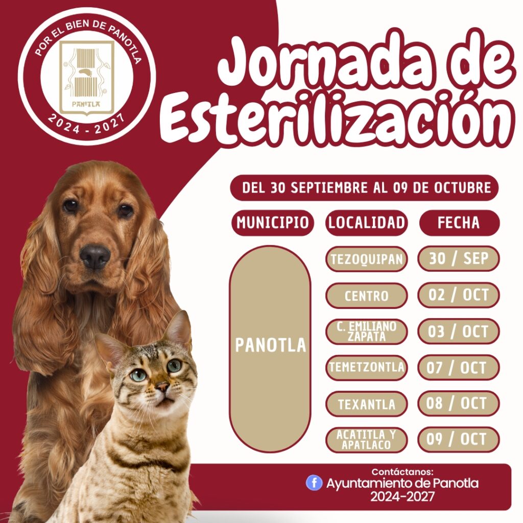 PRÓXIMA JORNADA DE ESTERILIZACIÓN PARA PERROS Y GATOS EN PANOTLA.