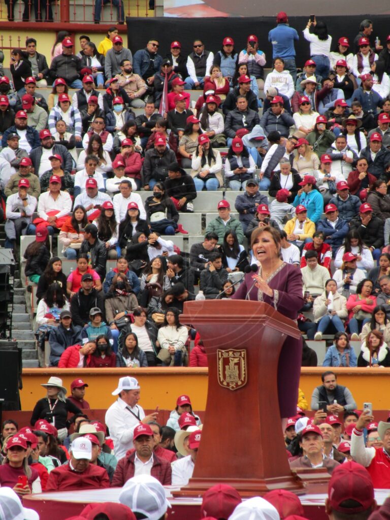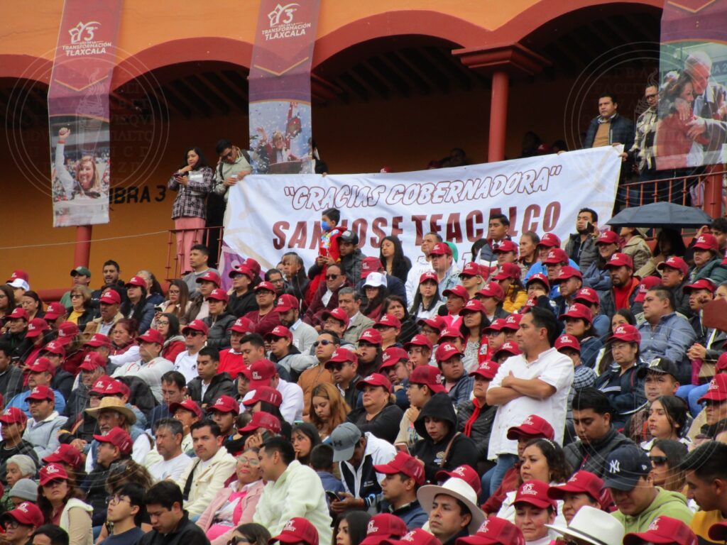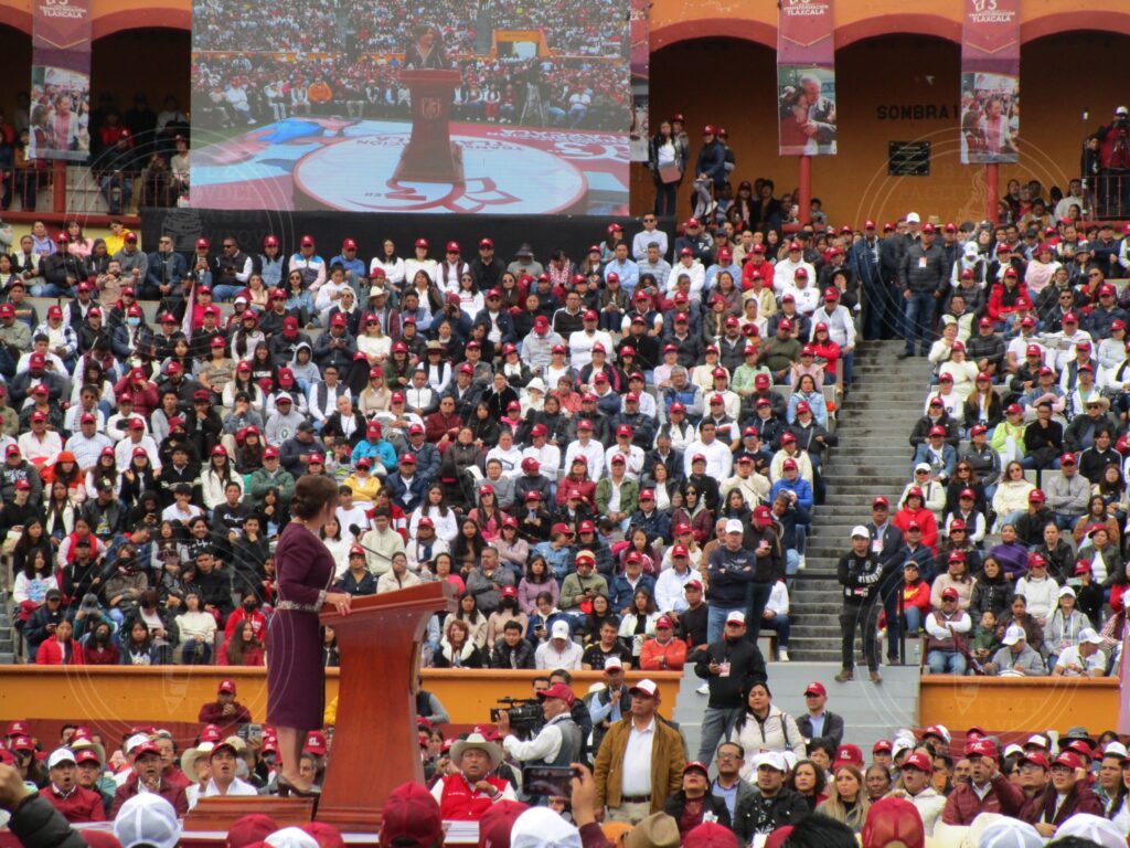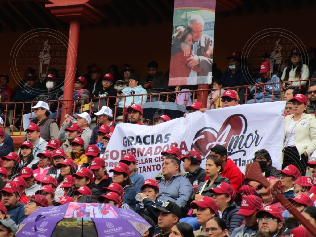 En la plaza de toros de Apizaco, Lorena Cuéllar Cisneros encabezó la celebración por el tercer año de transformación en Tlaxcala, con la organización de Morena y la asistencia de miles de militantes y simpatizantes, funcionarios, diputados locales, y presidentes municipales.