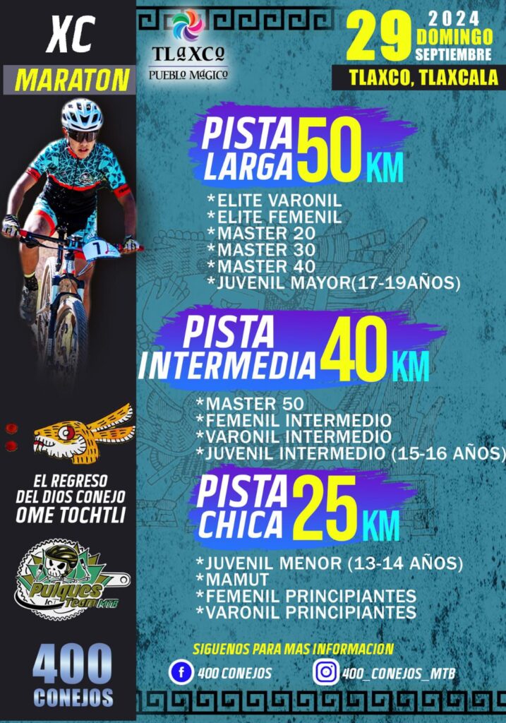 *Invita al XC maratón “El Regreso del Dios Conejo Ome Tochtli”, a realizarse el próximo 29 de septiembre