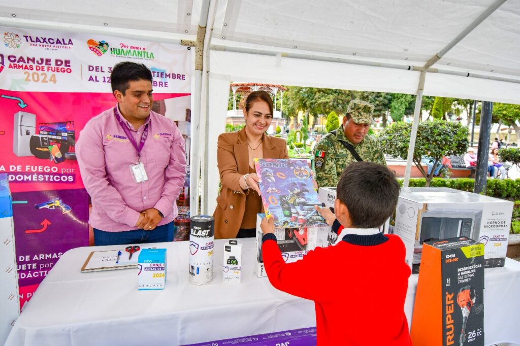 Con el primer intercambio de juguetes bélicos por juegos didácticos, inició el H. Ayuntamiento de Huamantla con la campaña Canje de Armas de Fuego 2024, en coordinación con el Secretariado Ejecutivo del Sistema Estatal de Seguridad Pública (Sesesp) y la 23 Zona Militar.