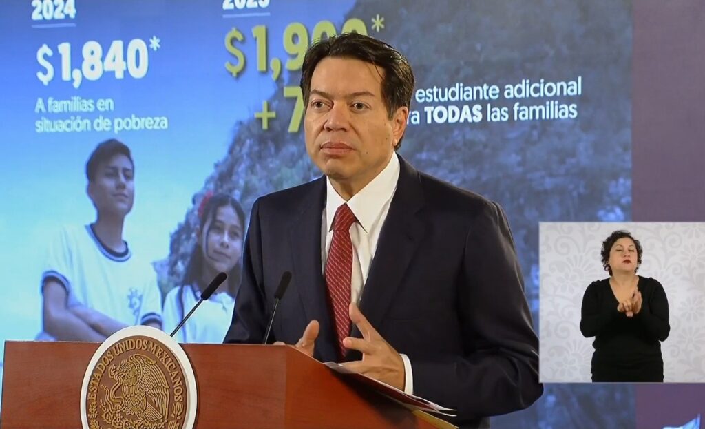 El secretario de Educación, Mario Delgado Carrillo, anunció la nueva beca universal «Rita Cetina» para estudiantes de educación básica. La beca ofrecerá un apoyo bimestral de $1,900 por familia, más $700 por cada hijo adicional. Beneficiará a 21.4 millones de niñas y niños en todo el país.