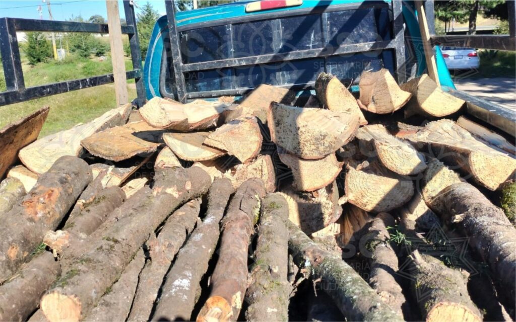 En el primer caso, elementos policiales al encontrarse de recorrido de seguridad, sobre carretera Perimetral y Camino 2, a la altura del municipio de San Pablo del Monte, observaron una camioneta marca Ford, tipo Ranger, con placas de circulación del estado de Hidalgo, la cual se encontraba cargada de materia prima consistente en leña en raja y brazuelo de diferentes dimensiones y diámetro.