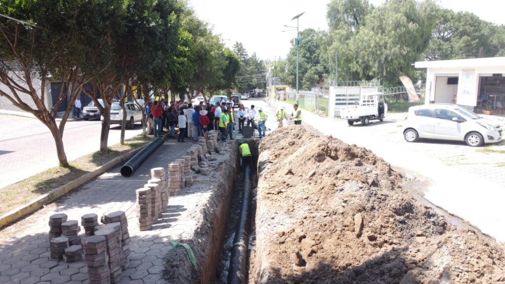 Personal de la Comisión de Agua Potable y Alcantarillado del Municipio de Tlaxcala (CAPAM) inició con los trabajos de modernización de tuberías y mantenimiento de pozos de visita en la calle Beatriz Paredes, colonia La Joya, en San Gabriel Cuauhtla.
