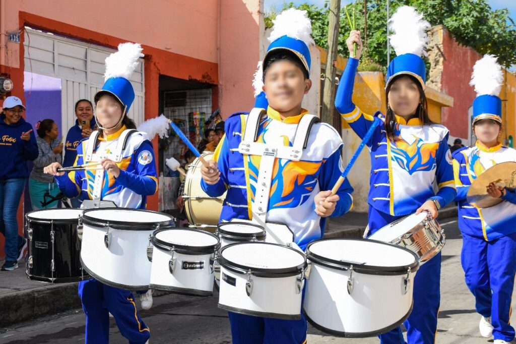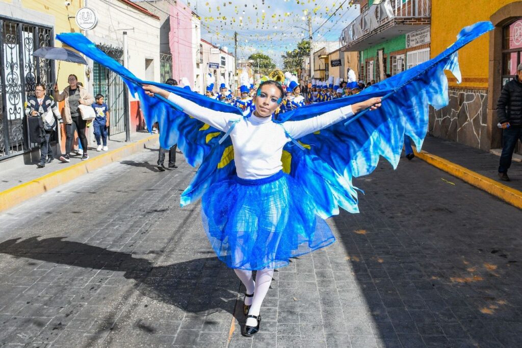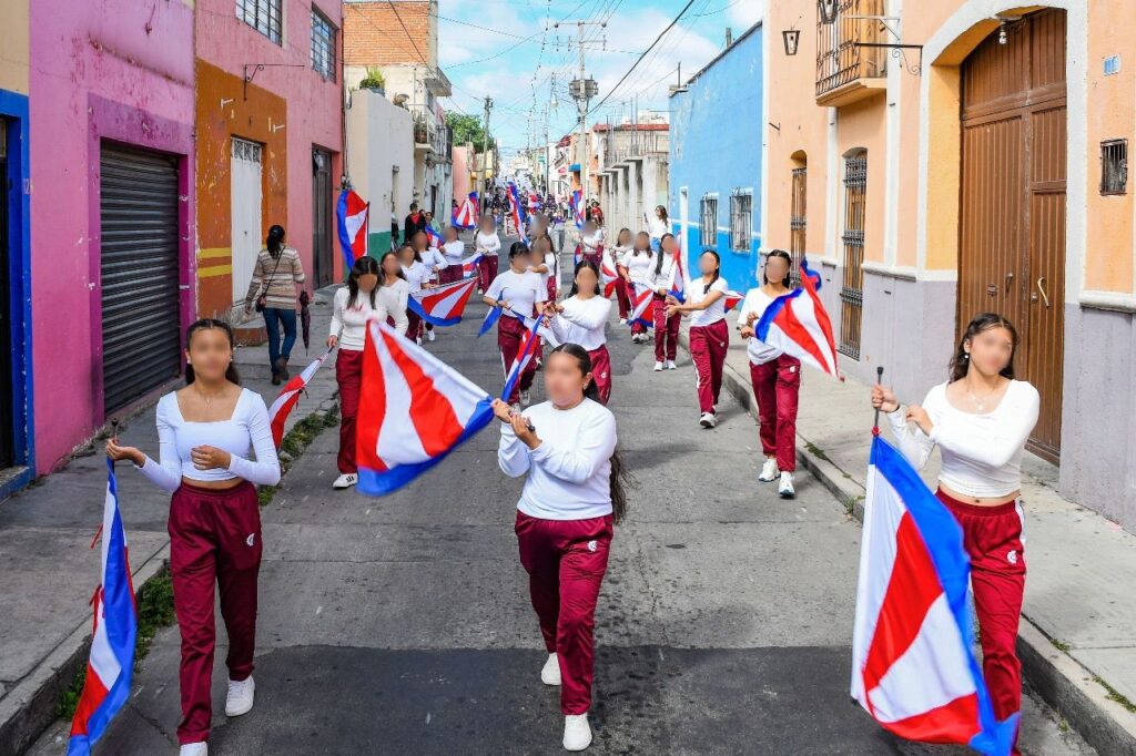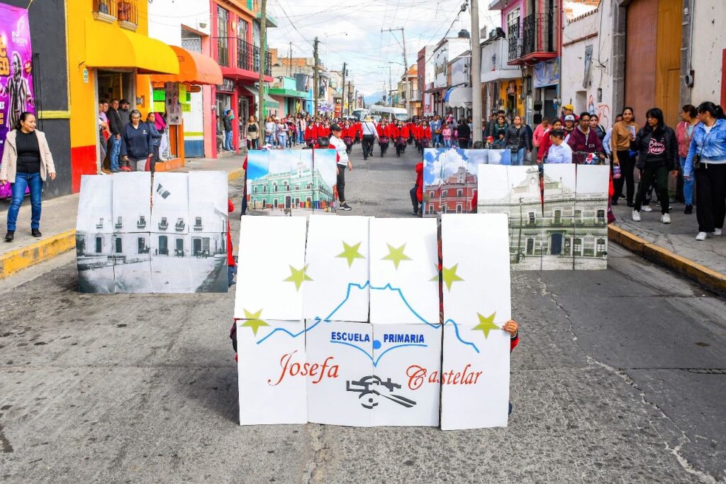 Luego, acompañado de todos los integrantes del Ayuntamiento, Santos Cedillo encabezó el desfile conmemorativo por las diferentes calles de la ciudad hasta llegar al barrio de San Lucas, donde tuvo lugar una ceremonia cívica y presentaciones artísticas de estudiantes de escuelas primarias.