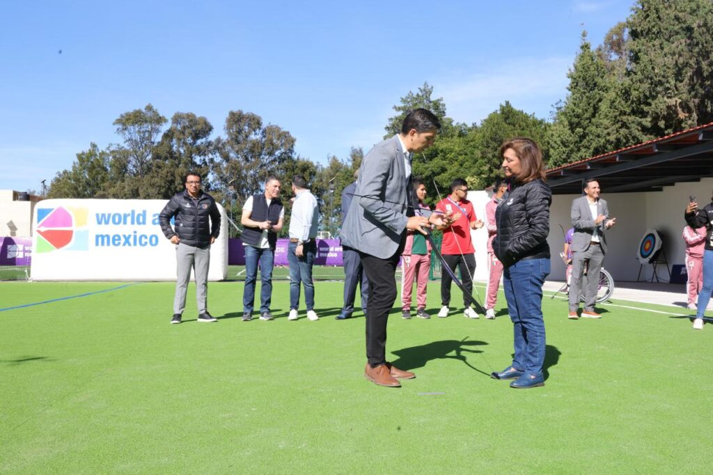 Acompañada de las autoridades federales, estatales y Tom Dielen, el secretario general de World Archery, la atleta paraolímpica pionera en México en tiro con arco, Ana Maria Tenorio, la gobernadora, Lorena Cuéllar realizó el tiro inaugural.