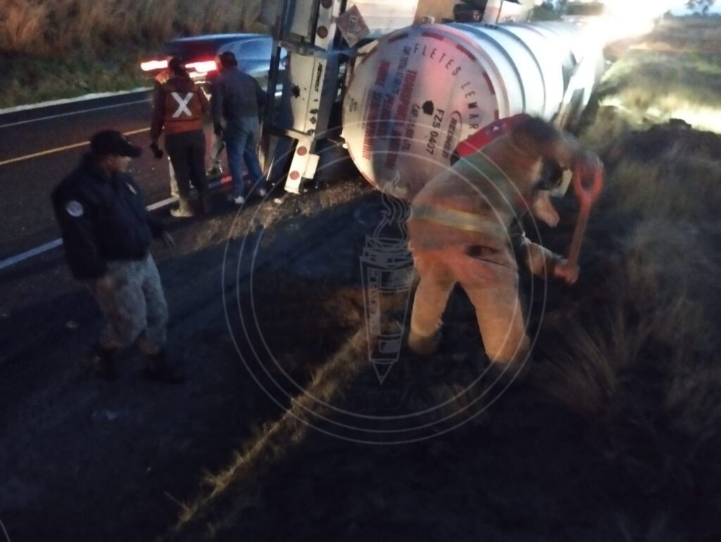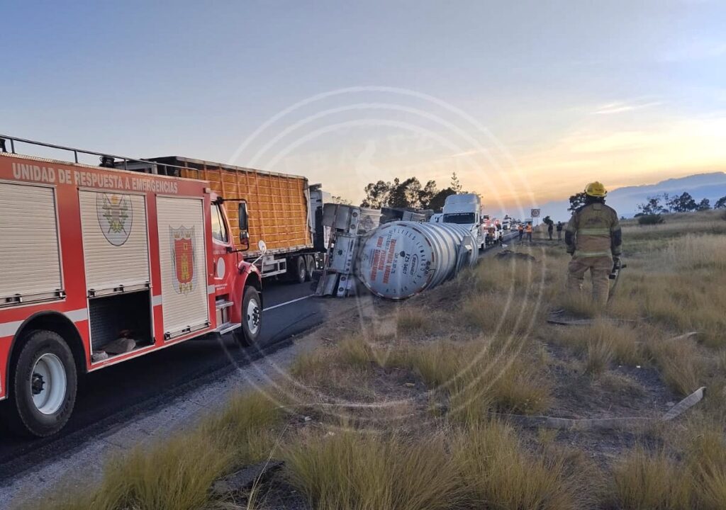 En un incidente que ocurrió en la autopista Amozoc-Perote, una pipa cargada de gasolina se volcó en el kilómetro 117+500, pasando la caseta de Cuapiaxtla, con dirección hacia Perote.