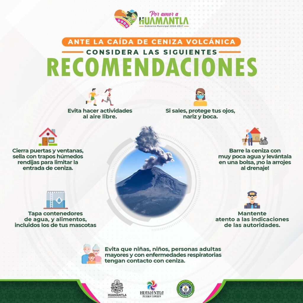 Ante el aumento en la actividad del volcán Popocatépetl y la caída de ceniza, el Ayuntamiento de Huamantla llamó a la ciudadanía a estar atenta a las indicaciones de las autoridades para que, en caso de ser necesario, se atiendan las recomendaciones y eviten poner en riesgo su salud.