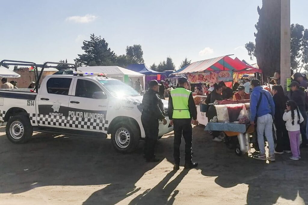 La Policía Municipal de Huamantla implementó un operativo especial de seguridad y vialidad en los panteones de la ciudad este 1 y 2 de noviembre, con el fin de garantizar la protección de los visitantes que acuden a rendir homenaje a sus seres queridos en el Día de Muertos.