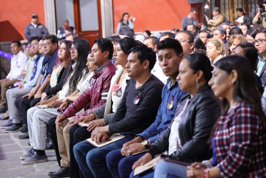 “Quiero decirles a todos ustedes que, es un honor acompañarlos en esta entrega de reconocimientos, a talentosos creadores tlaxcaltecas, verdaderos guardianes del patrimonio artesanal de México. Es un honor poder saber que en sus manos, su mente, su corazón construyen diariamente diferentes piezas que son únicas y que hoy se habla de Tlaxcala en el mundo entero y ese es un gran orgullo”, enfatizó en el patio central del Palacio de Gobierno.