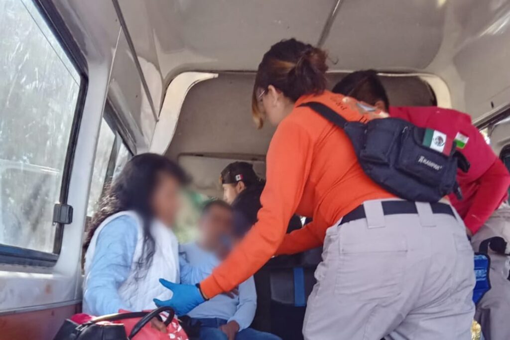 En un acto de reacción inmediata, paramédicos de Protección Civil de Huamantla, en coordinación con diferentes cuerpos de atención a emergencias, brindaron los primeros auxilios a 12 personas que resultaron lesionadas luego que la unidad en la que viajaban se impactó contra un árbol en el camino a San Juan Ocotitla.