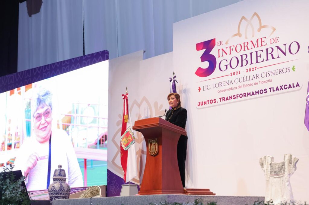 Al emitir su primer mensaje con motivo del tercer informe de gobierno, en el Centro Cultural Universitario (CCU) de Tlaxcala, enfatizó el apoyo histórico brindado a las personas con discapacidad, con obras como el Centro de Capacitación Laboral para Personas con Discapacidad (Cecapdif), “que destaca a nivel nacional por su modelo integral para integrar a este sector al mercado laboral”, así como cinco parques inclusivos para incorporar a niñas y niños con discapacidad al disfrute de la vida comunitaria.