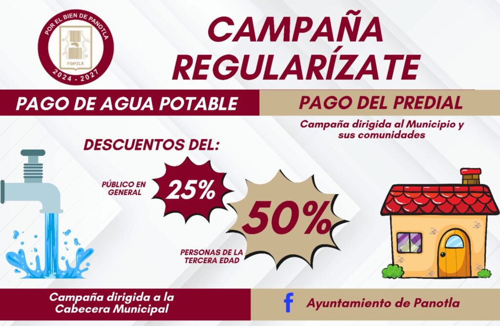 AYUNTAMIENTO DE PANOTLA RECUERDA E INVITA A LA CIUDADANÍA A LA “CAMPAÑA REGULARÍZATE” EN EL PAGO DE AGUA POTABLE Y PREDIAL