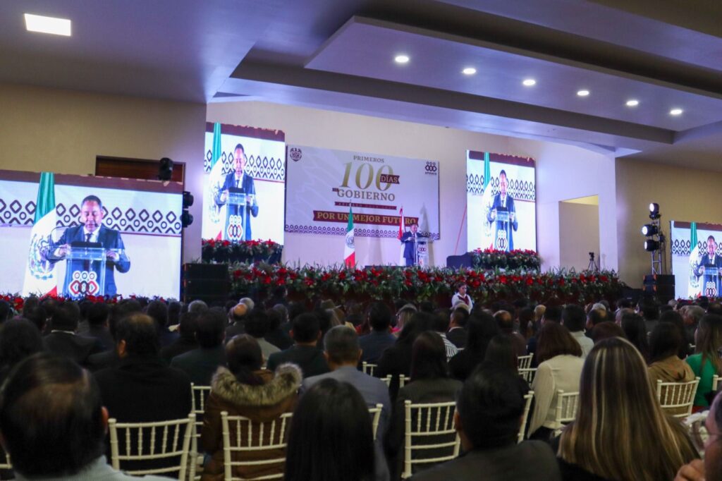 En presencia del Secretario de Educación Pública, Homero Meneses Hernández, quien asistió en representación de la Lic. Lorena Cuéllar Cisneros, Gobernadora del Estado de Tlaxcala, así como de diputados federales, locales, presidentes y expresidentes municipales, integrantes del gabinete legal y ampliado, empresarios, medios de comunicación y ciudadanos, el presidente destacó los avances clave en áreas como: seguridad, infraestructura, salud y desarrollo económico, durante los primeros 100 días de gestión al frente del gobierno municipal de Apizaco.