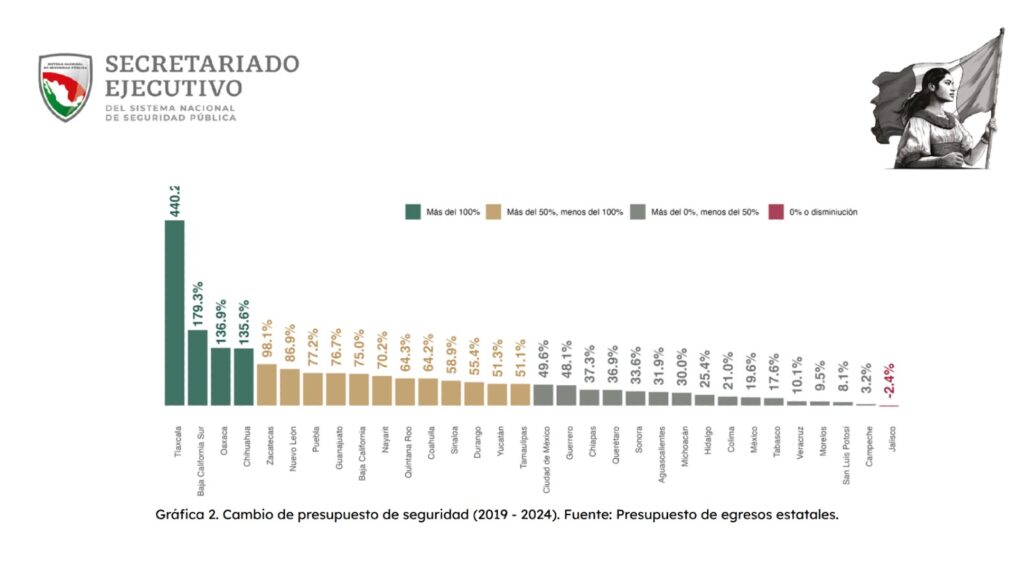 Finalmente, Jalisco fue el único estado que recortó fondos al rubro de seguridad en el periodo analizado, con -2.4 por ciento.