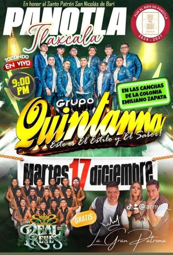 • El Ayuntamiento de Panotla en coordinación con la mayordomía te invitan a disfrutar de las últimas actividades de feria en honor a San Nicolás de Bari.