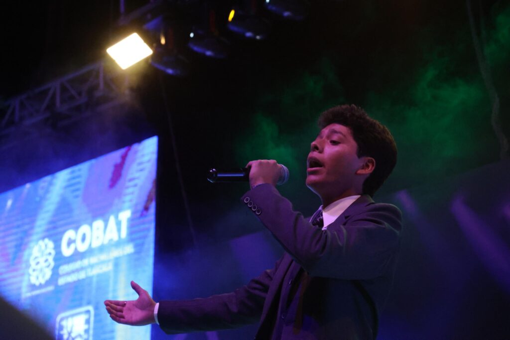 La gobernadora Lorena Cuéllar Cisneros encabezó la ceremonia de premiación del concurso “Talentos Cobat 2024” del Colegio de Bachilleres de Tlaxcala, en el que expresó su reconocimiento al esfuerzo y dedicación de los alumnos que participaron en el certamen de canto.