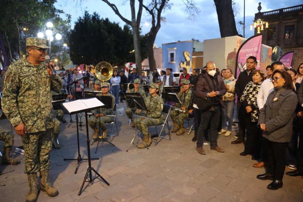 Al termino del evento, los asistentes disfrutaron del concierto de La Banda de Música de la VI Región Militar, que interpretó canciones con diferentes ritmos, desde clásicos de música disco hasta salsa, lo que aprovecharon algunos asistentes para bailar en el zócalo de la capital tlaxcalteca.