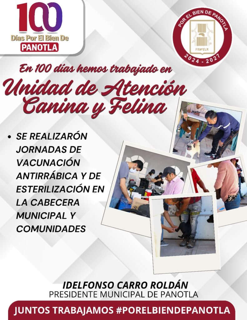 En pro del cuidado y respeto hacia los animales, la Unidad Canina y Felina de Panotla ha llevado a cabo campañas de esterilización beneficiando a 353 mascotas y 100 vacunas antirrábicas gratuitas mejorando el bienestar animal en el municipio.