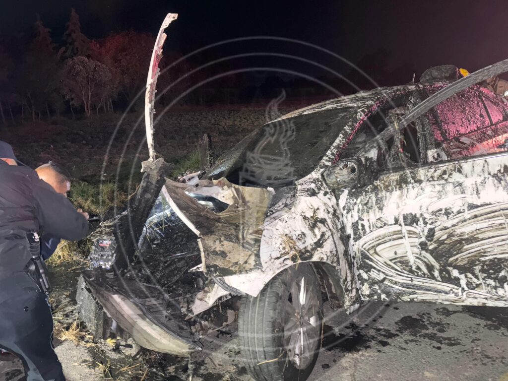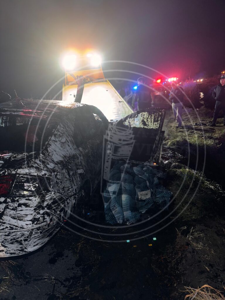 El accidente ocurrió cuando un auto blanco, aparentemente conducido a exceso de velocidad, se volcó en una zanja, en la carretera Industrial-La Regadera, a 200 m de Liconsa, dejando a Aurora sin signos vitales.
