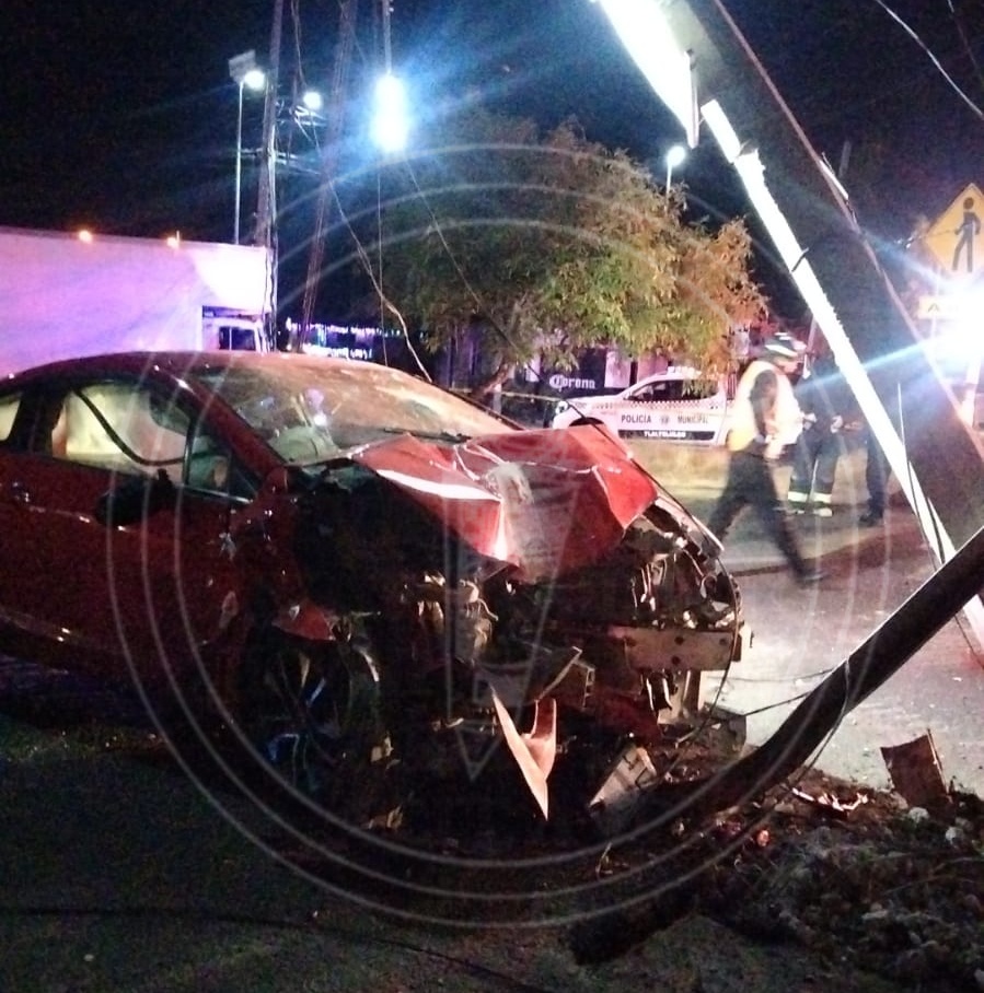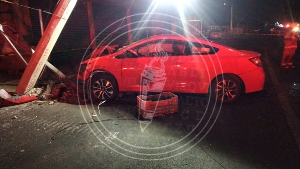 Aproximadamente las 02:05 horas, a la altura de la colonia Yoalcoatl, un vehículo marca Honda, color rojo, se estrelló contra un poste de la Comisión Federal de Electricidad (CFE).