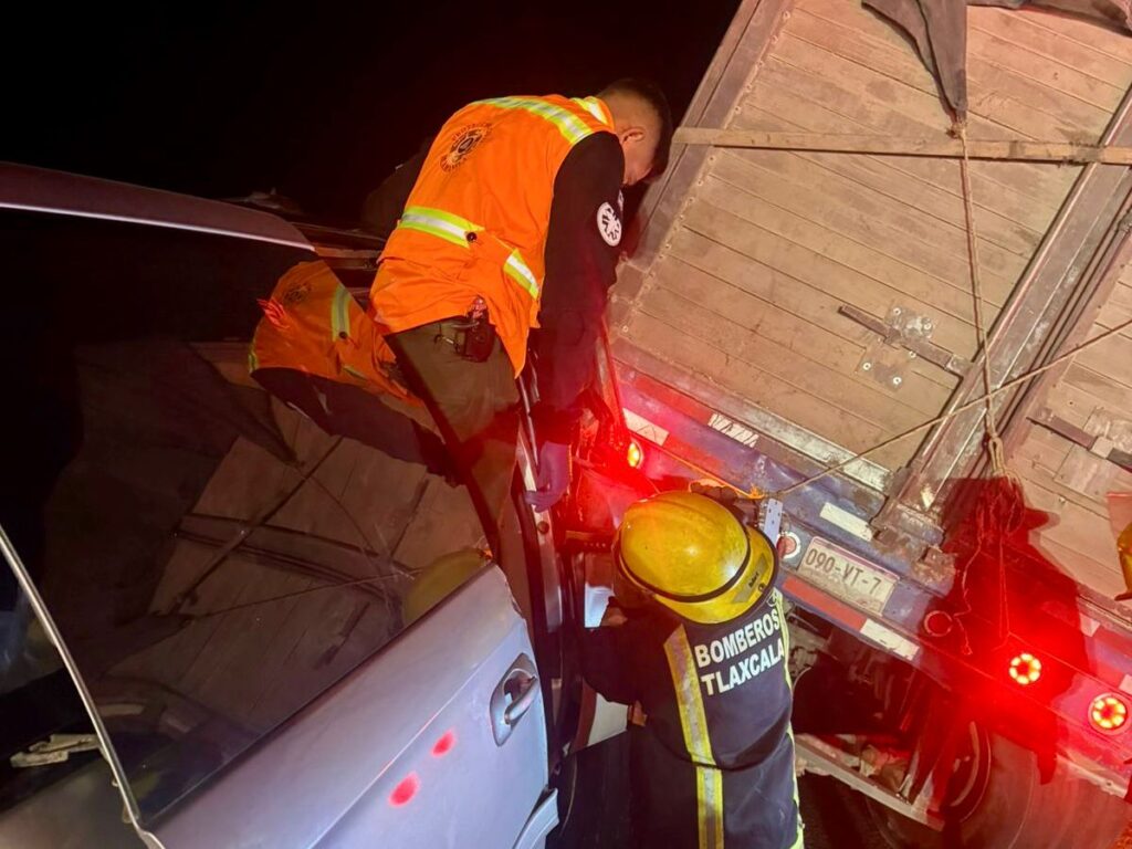 Mientras que la mujer, de 60 años de edad, quien quedó atrapada en el vehículo Ford, tipo Windstar, color gris, que se impactó en la parte trasera de un trailer, resultó con probable fractura en fémur derecho, por lo que fue liberada por los rescatistas, estabilizada y posteriormente trasladada al IMSS de Apizaco en la ambulancia de Protección Civil de Huamantla.