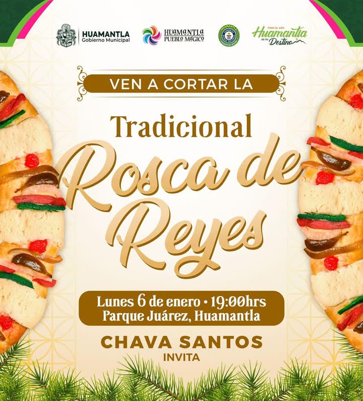 El Presidente Municipal de Huamantla, Salvador Santos Cedillo, en representación de Melchor, Gaspar y Baltasar, invita a todas las familias huamantlecas a partir la tradicional rosca.