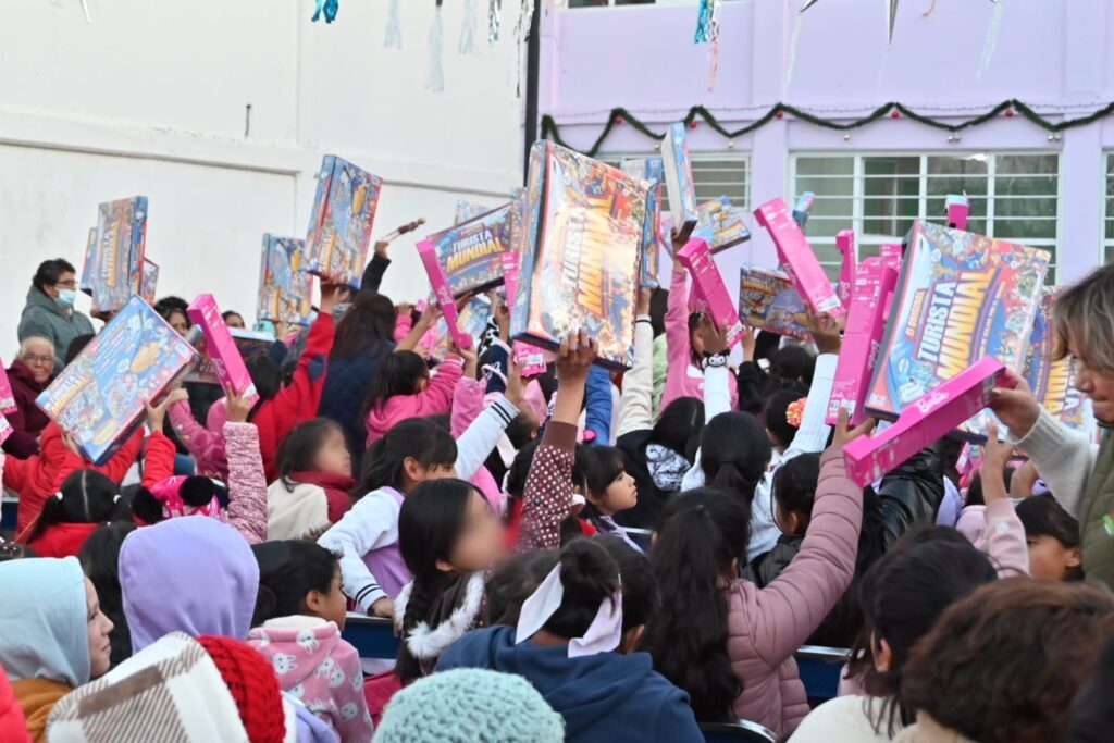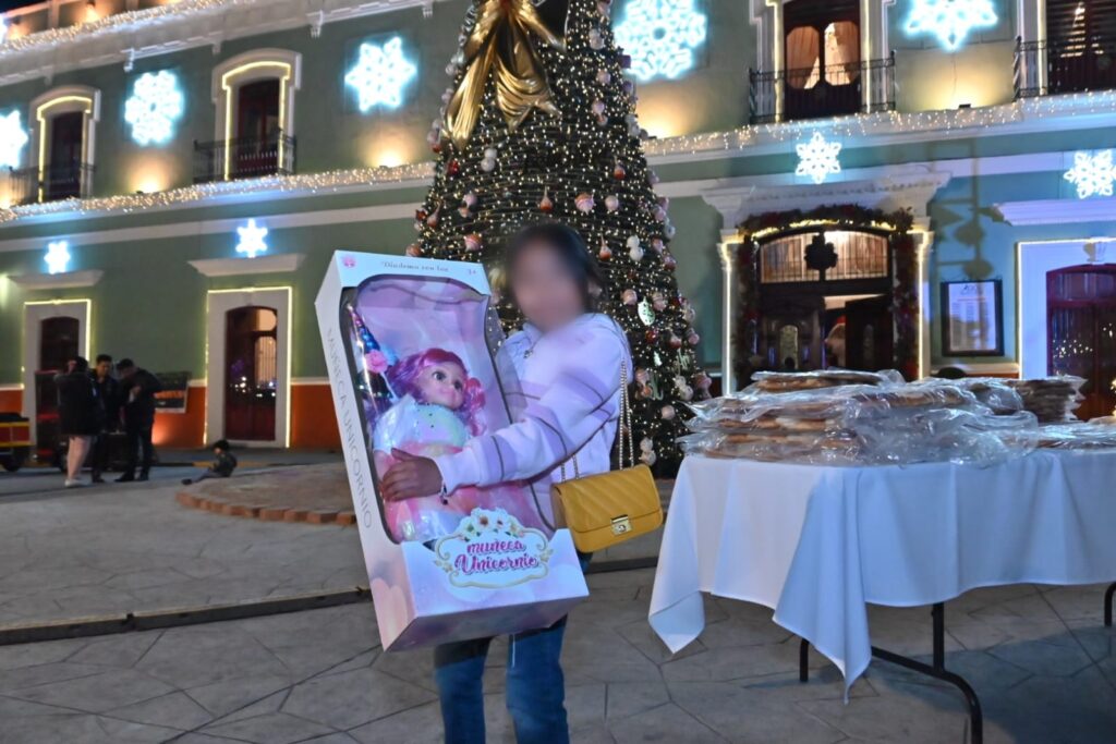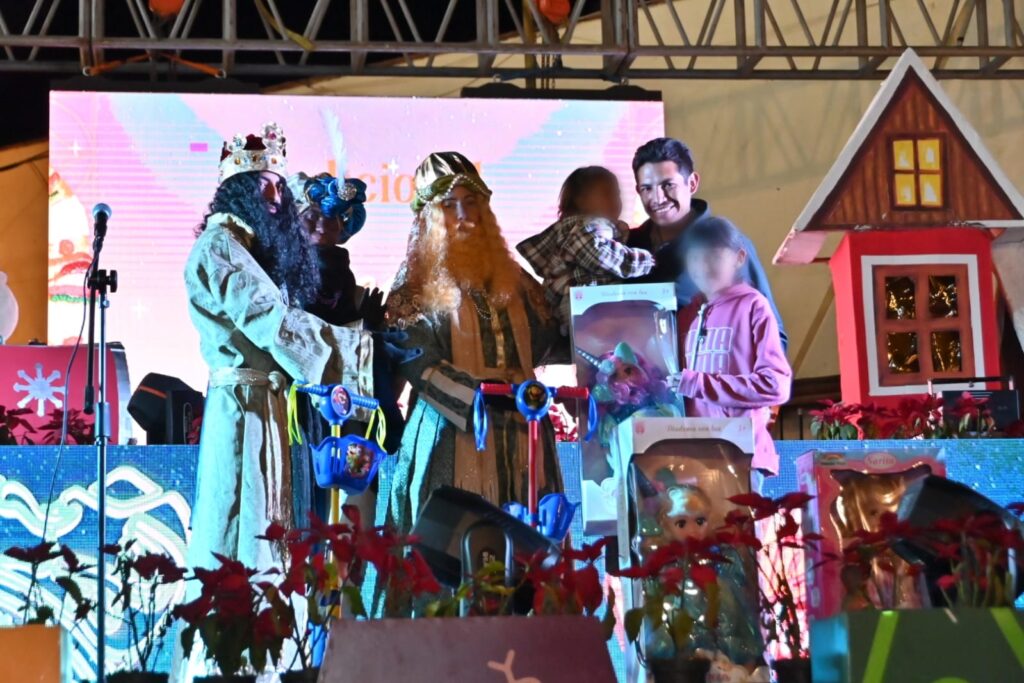 En esta noche festiva, las niñas y niños presentes recibieron regalos como muñecas y patines hasta juegos de mesa y orejeras para protegerse del frío, entre otros regalos al participar en los juegos y dinámicas de los Reyes Magos.