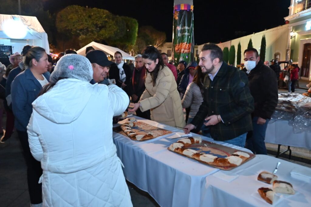 Acompañado por Melchor, Gaspar y Baltasar, el Presidente Municipal de Huamantla, Chava Santos, encabezó una noche mágica llena de alegría y tradición al compartir con niñas, niños y sus familias el corte de la tradicional Rosca de Reyes.