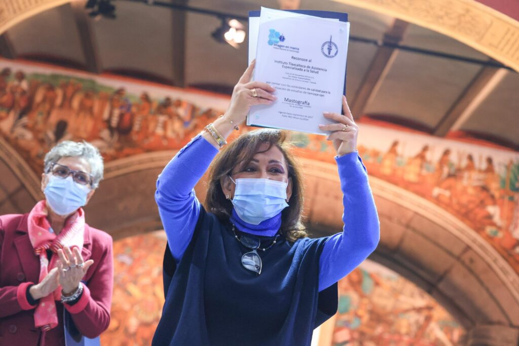 Al recibir el reconocimiento del Instituto Nacional de Cancerología (INCan) a la calidad del servicio de mastografía del Instituto Tlaxcalteca de Asistencia Especializada a la Salud (Itaes), la gobernadora Lorena Cuéllar Cisneros reconoció al personal de esta institución, que participó en una evaluación exhaustiva que analiza documentos, equipos y mantenimiento, entre otros aspectos.