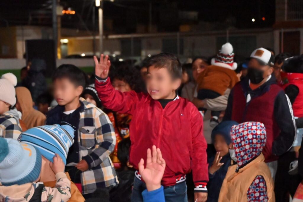 Cerca del anochecer, la caravana mágica llegó al último punto de visita en el barrio de San Sebastián, donde cientos de niñas y niños recibieron sus juguetes.
