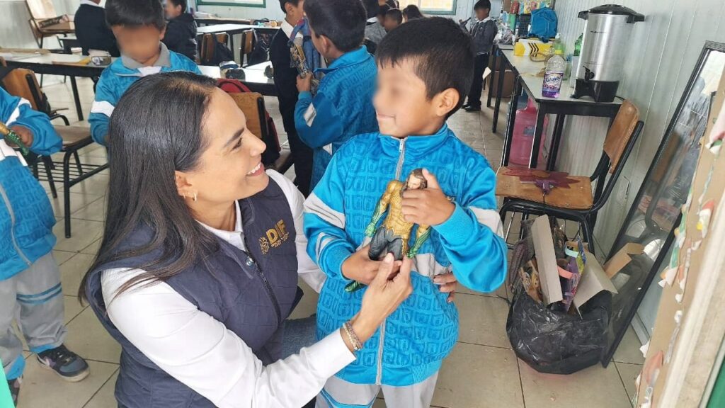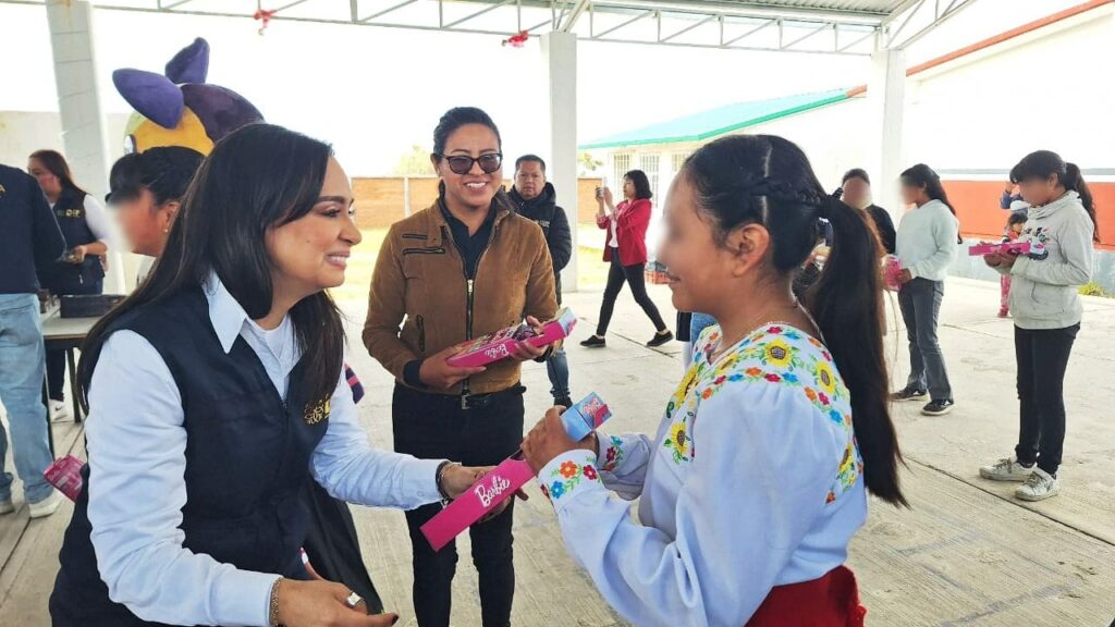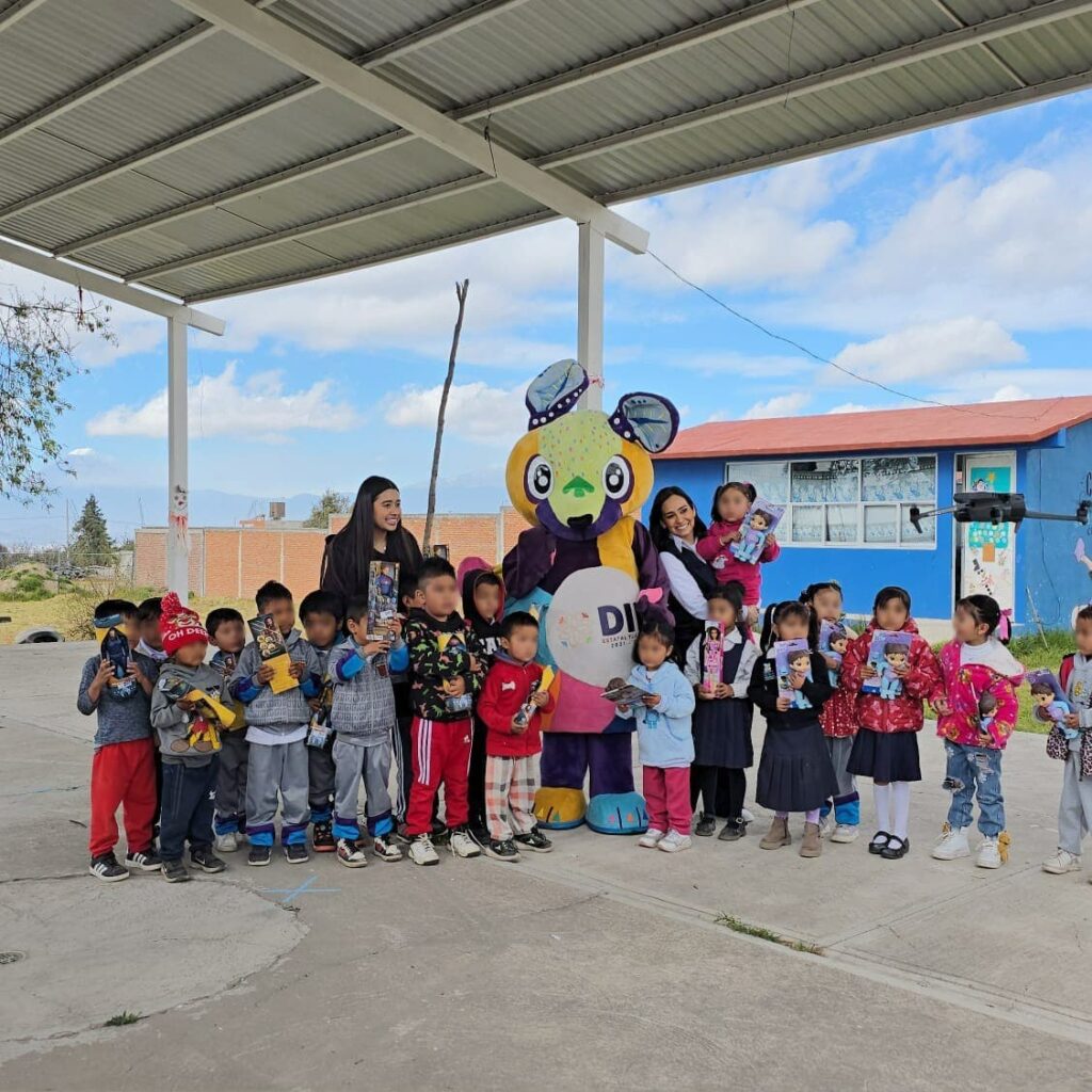 Fue en la escuela primaria indígena Xochikoskatl, y en el preescolar Conafe Citlalli Apan Militzi del barrio San Nicolás del Municipio de San Pablo del Monte, donde la presidenta honorífica del SEDIF, Mariana Espinosa de los Monteros Cuéllar, marcó el inicio de la entrega de juguetes a niñas y niños de comunidades vulnerables.