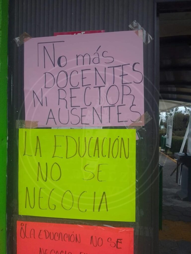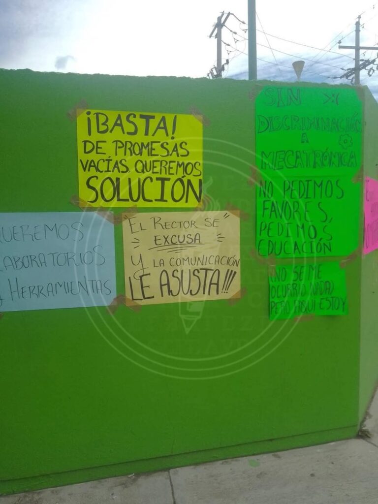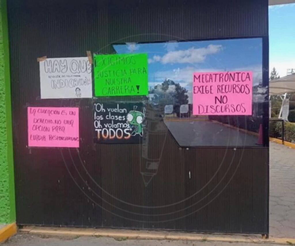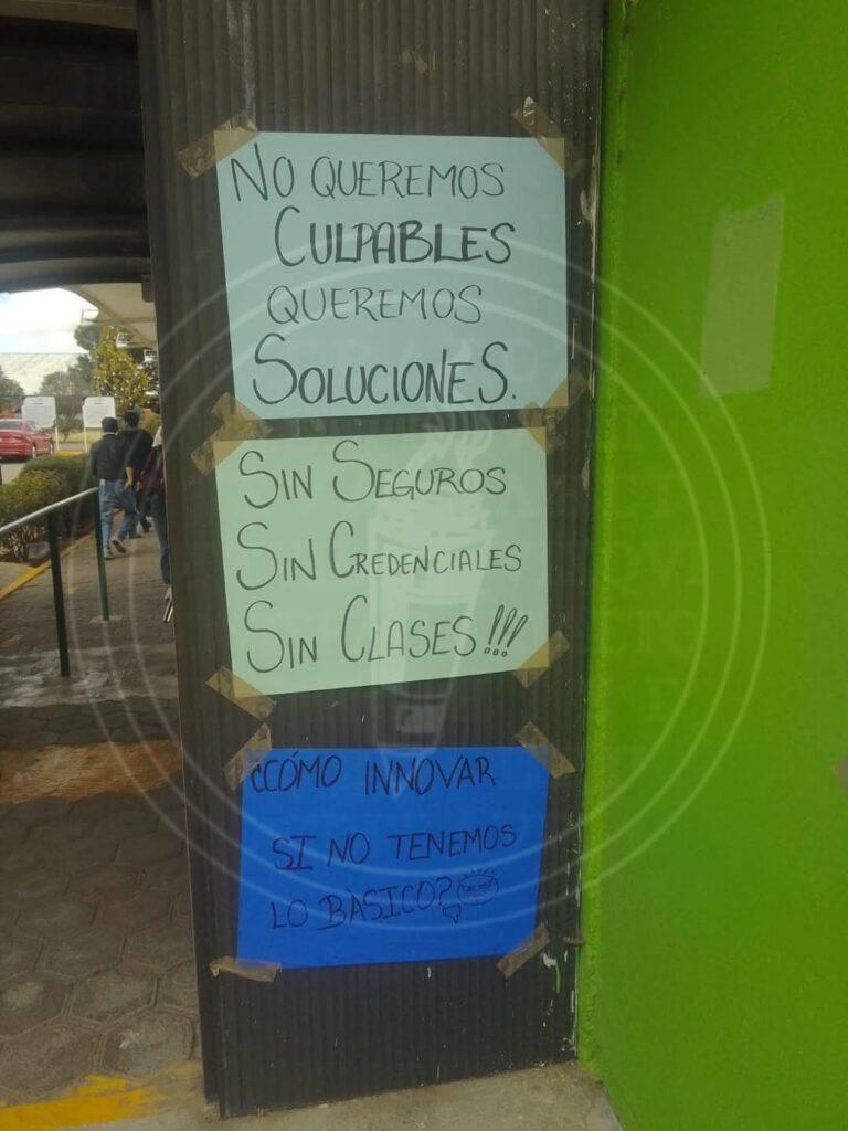En protesta por la falta de respuesta y solución a sus demandas, los estudiantes colocaron pancartas y se quejaron de la incompatibilidad de horarios, falta de clases, ausencia de calificaciones y falta de infraestructura y material.