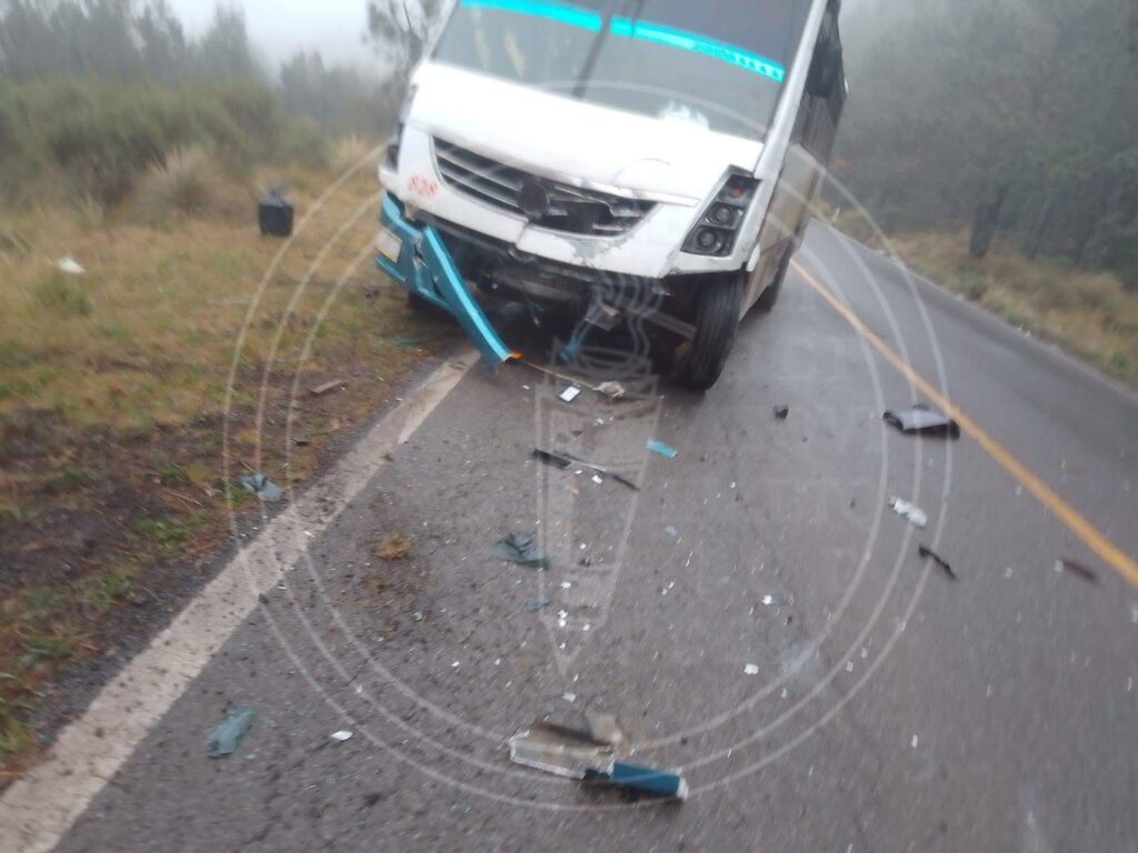 El accidente involucró un microbús de transporte público de la empresa Atah, con número económico 828, y una camioneta marca Volkswagen, tipo Robust de color blanca.